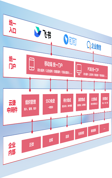 对协作平台提供支持服务,,,支持企业应用与协作平台对接,,包含组织同步、、、、消息集成、、待办集成等。。。。支持目前主流的协作平台:钉钉、、、企微和飞书。。。